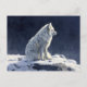 A beautiful white arctic fox sitting in a snowy wonderland, a serene scene captured in an oil painting on a picturesque postcard.  Perfect to collect as artwork or integrate into your crafts such as scrapbooking.