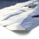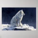 A gorgeous white arctic fox sitting in a snowy wonderland, a serene scene captured in an oil painting on a picturesque poster.