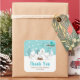 This cute and fun baby shower thank you sticker features an adorable arctic fox family in a winter wonderland setting with snow capped trees and a blue bird on a branch with holly. In the background is a teal blue green sky and falling snowflakes. The text combines decorative and sans serif fonts for a stylish and modern look. This is perfect for a Christmas or winter themed baby shower.