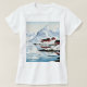 The painting depicts a small village nestled on the edge of a frozen body of water, surrounded by snow-capped mountains.