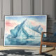 Crafted with meticulous attention to detail, the poster showcases the crystalline ice formations of the Arctic landscape against a backdrop of deep blue ocean waters. The vivid hues of blue and white evoke a sense of tranquillity and awe, inviting viewers to immerse themselves in the majesty of the icy seascape.