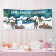 Arctic dreaming banner with the Aurora borealis lighting up the sky, polar bear, reindeers, walruses, narwhal, orcas or killer whales and arctic fox. Customise the text for your next arctic / North Pole themed party or to create an extra special gift for someone.