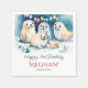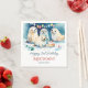 Cute baby seals arctic winter birthday party personalised napkins template , watercolor winter wonderland cute baby seals having a party with a birthday cake winter themed children birthday party personalised table decor