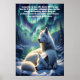 Two Arctic white wolves are sitting gracefully in the glistening snow under a stunning aurora borealis, their fur blending seamlessly with the winter landscape.