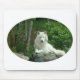 White arctic wolf resting on a rock mouse pad.