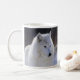 Photograph of an arctic wolf printed on each side of mug. Mug style, size, and colour are customisable.