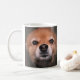 Cute, inquisitive dog's face on a coffee mug.