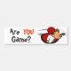 Bumper Sticker with a boy getting hit in the face- It says "Are YOU Game?"
