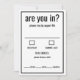 Are you in funny rsvp black and white minimal invitation