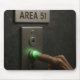 A dark brown wrinkled alien hand presses a glowing green button labelled 'Area 51' on an elevator panel, sparking curiosity about the secrets of the location