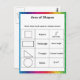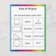 A fun math postcard that can be used for quick reference that has the area formulas for squares, circles, rectangles and triangles against a rainbow background!