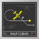 This artwork shows an Aresti symbol for a Half-Cuban aerobatic manoeuvre. Included is a description of the manoeuvre. The Aircraft pictured is a Super Decathlon aerobatic aeroplane.