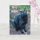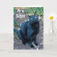 Arg is the all-black cat who lives next door to my sister. An opportunist, he stops by for treats, but also for affection. In this photograph, he is siting in the garden, gazing up at--perhaps?--an interesting bird. Under and around him is brown mulch, with a few fallen, light tan bamboo leaves. In the upper portion are some green leaves with a bit of tan fence, and on them are written the words, "Arg Says" in white lettering, with a continuation of his message on the inside of the card. Arg's bright green eyes stand out in his black face. He invites petting and, I may add, is as soft as he looks! Copyright Gail Storrs 2011.