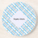 Round coaster featuring the Argentine Flag, tiled, on a diagonal, with the word ARGENTINA, underneath in the blue and white colors of the flag. A white, fractal space of squiggly squares will hold your name for adding personalization or creating a unique, customized gift. In the center of the flag is a yellow sun with a man's face.