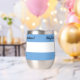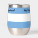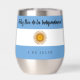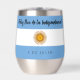 Celebrate the independence day of Argentina with this festive stainless steel stemless wine tumbler, which features the iconic blue and white colours of the Argentinian flag with salutations and date on the blue portions of the flag. ¡Feliz Día de la Independencia! Reverse shows identical design.