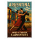 Foreground: a passionate tango couple dancing in dramatic pose, the man in a black suit and the woman in a flowing red dress.
