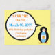 Ms. Penguin is all decked out in her Argentine flag vest and ready to shout the date of your party or other event. Customise the SAVE THE DATE card with personalised details like type of party, date, etc. You can change the background colour to fit your party's theme. Change the colour of the text, too if you like. Just let Ms. Penguin shout your party details.