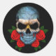 Argentinian Flag Skull with Red Roses Classic Round Sticker