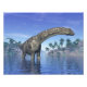 Argentinosaurus dinosaur in water next to islands with palm trees by beautiful day