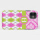 Argyle and damask pattern green, pink monogram Case-Mate iPhone case