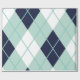 Argyle modern pattern teal navy blue preppy fun wrapping paper