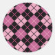 Argyle Pattern in Black and Pink Classic Round Sticker