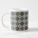Argyle Pattern in Blue and Taupe Large Coffee Mug