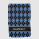 Argyle Plaid Custom Create Name Black Blue Golf Towel