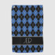 Argyle Plaid Custom Monogram Initials Black Blue Golf Towel