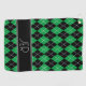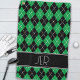 Argyle Plaid Custom Monogram Initials Black Green Golf Towel