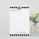 Stationery for teachers featuring the logo of The Pink Schoolhouse at the top centre. Black argyle design on each side and along bottom. Top text reads "From the desk of......." Bottom text reads ".......Your name here" Personalise with your own name. Parisian font. You may change the font size, style, position, or colour using the design tool if you wish.