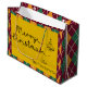 Argyle Yellow Orange Green Script Merry Christmas Large Gift Bag