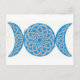 A blue and silver celtic knotwork triple moon. The knotwork on each moon is one continuous path, symbolising the eternal nature of the spirit and the universe.