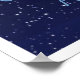 Poster featuring the symbol for Aries in soft silver blue, overlaid with the stars of the constellation, against a starry sky background graded from deep midnight blue to black.