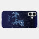 Phone case featuring the zodiac symbol for Aries in soft silver blue, overlaid with the stars of the constellation, against a starry sky background graded from deep midnight blue to black.