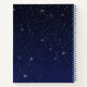 Spiral notebook featuring the symbol for Aries in soft silver blue, overlaid with the stars of the constellation, against a starry sky background graded from deep midnight blue to black.