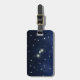 Zodiac luggage tag for an Aries, with shining stars forming the constellation on a dark blue starry sky.