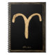 Stylised hammered gold Aries the Ram astrology zodiac birthday symbol in a hand drawn gold double line frame. This notebook or dream journal or writing pad has Aquarius text in a fine script, which can be personalised to narrate your own story.