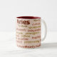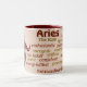 A lovely zodiac sign mug, with a cute graphic and a description of the sign Aries.