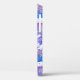 This fun phone case design makes the perfect gift for anyone born under the zodiac sign Aries. It includes a unique pattern made of a vintage ram, the constellation, and the word "Aries," all in white on a purple-pink starry background.