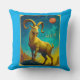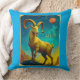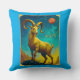 Pillow in a majestic ram standing atop rocky terrain, symbolises the sun sign Aries. Set against a cosmic backdrop with a glowing red planet Mars, the ram's bold horns and intense gaze evoke strength, courage, and a fiery spirit.