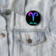 Aries astrology symbol round or square button pins, glossy black background, aries the ram sign in blue purple magenta hues. Happy blessings from Happy Wishing Well dot com.
