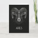 Custom folded greeting card with blank interior featuring Aries zodiac sign constellation with "Aries" mystical typography on black background.
