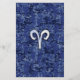 A silver chrome like Aries zodiac symbol on a navy blue decor print background. A modern urban racy design for a great custom birthday gift idea.