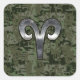 Aries Zodiac Symbol Woodland Digital Camouflage Square Sticker
