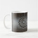 A mug with an image of an Arisaka Model 99 rifle top receiver with its engravings of the Imperial Chrysanthemum and the model number ( written in Japanese ). This was a World War II infantry rifle used by the Japanese Imperial Army. After Japan surrendered, the Chrysanthemum engraving was ground off of most of these rifles.