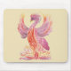 Original watercolor painting by Sandra Gale, featuring a stylised and fiery Phoenix bird with wings spread and flames rising from below. A pastel and pale array of colours make this a more muted design that works well with most background colours. Uniquely beautiful and graceful design for all.