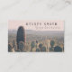 A business card featuring an original photograph of a peaceful desert landscape with saguaro and prickly pear cacti.