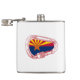 The flask itself is fine. It’s a cheap flask, obviously bought in bulk, however am prepared to overlook that. Given that it is a personalized item, I would have liked to have seen gift boxing instead of the generic packaging. Terrible printing, and/or quality. It’s a cheap, tacky vinyl. It is not cut straight and is also applied in a way that it is overhanging the bottom, causing the glue to catch on items and it will eventually roll and tear, damaging the wrap.