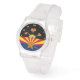 I only have one complaint. I ordered the watch with clear case and strap, and what was sent was white case and strap. I'm going to keep it because 1) it looks very nice in white, and 2) it would take too long to get a replacement made and sent in time for my occasion. Aside from the mix up with the color, the watch does look very good in white. The purple dial is actually sparkly which did not show in the online images. That was a nice surprise. If you like Swatch watches this is very similar to those. It's 33.6mm in diameter, 10.5mm thick, and 40.6mm lug to lug. Stainless steel case back says 3ATM/30m WR, so no swimming or showering or submerging this one. If you like Woodstock, this is a great choice.